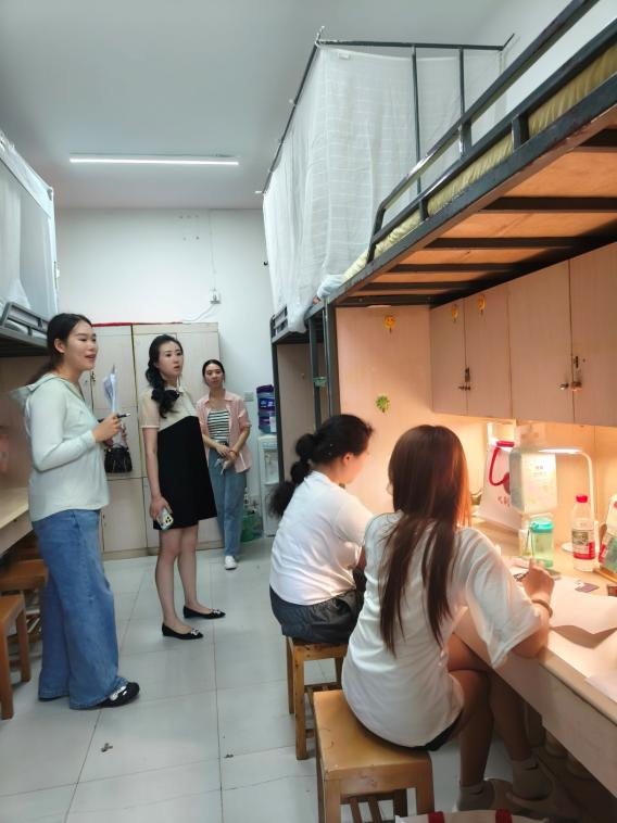 新生入住寝室后,党委副书记陈玮及辅导员们一同前往学生寝室,实地查看新生住宿环境,将关怀送到“家门口”。每到一间寝室,陈书记都仔细询问新生是否适应新环境,检查水电、家具使用情况,叮嘱大家注意用电安全、保持寝室整洁,提醒来自不同地区的同学相互包容、互帮互助,尽快建立融洽的室友关系,遇到生活难题或心理困惑要及时联系辅导员,学院会全力为大家解决后顾之忧,让家长放心、让学生暖心。亲切的话语、细致的关怀,让初入校园的新生们倍感温暖,也拉近了与学院的距离。