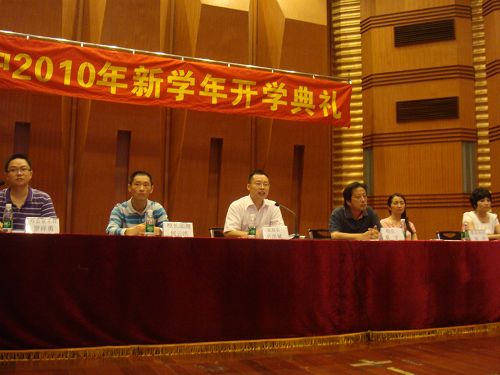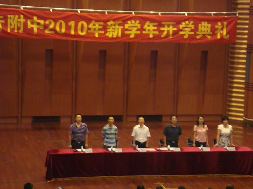 2010年8月31日,川音附中(本部)在学院大音乐厅隆重举行2010—2011学年开学典礼,学院党委常委、副院长孙洪斌教授与附中全体师生一起上了新学年的第一课。 在庄严的国歌声中,典礼开始,今年会2010届省级优秀毕业生周姝作为毕业生代表发言,随后在校生张玫瑰作为在校学生代表发言。紧接着,刘天赋老师作为教师代表发言,说出了附中全体教师的感言:虽然教学环境有待提升,但是我们的爱校之心、爱教之心将继续。 在典礼上,附中校长蔡宇教授对上学年取得优异成绩的教师们表达了感谢,对全校师生提出了新学年的希望和要求。 学院党委常委、副院长孙洪斌教授在典礼上高度肯定附中近年来在教学与管理上取得的优异成绩,希望师生们继续努力,再创附中的辉煌。孙院长还提出,学院将进一步加强附中的硬件建设。 在开学典礼结束后,孙院长还亲自到附中办公和教学场地实地调研,进一步了解附中的现状,为附中加油!