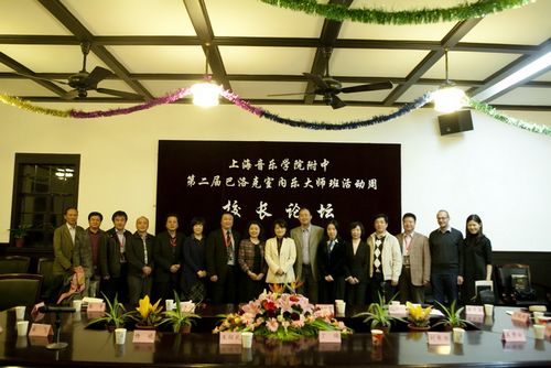 2011年10月26日,附中校长蔡宇教授、成教主任姚春城副教授和管弦系室内乐教研室主任张文坤副教授参加了由上海音乐学院附中主办的“第二届巴洛克室内乐大师班艺术周”校长论坛。蔡校长以《继承传统、吸收归国人才、搞好室内乐师资队伍建设》为题与九所音乐附中校长进行交流。室内乐是所有古典音乐演奏的基础,交响乐队的演奏基础、独奏家与乐团合作协奏曲的基础。室内乐的教学必须要重视,要加强师资队伍建设,要有一套行之有效、持之以恒的机制来保障,从各自的实际情况出发,加强室内乐的学科建设。