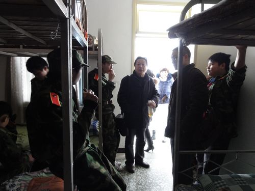 3月9日,附中领导蔡宇校长、罗祥勇书记和高一班主任看望附中高一年级军训学生。