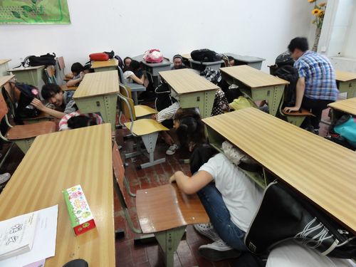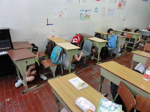 2012年5月17日上午第四节课,学校组织初中各班同学及班主任进行了地震和火灾紧急疏散演练。在地震演练中,大家以陈平老师的口哨声为讯号,先是躲在课桌下紧急避震,然后在班主任和班长的组织下按撤离顺序迅速逃离教学楼,到指定地点集合。由于是第一次进行大规模疏散演练,经验不足,造成在楼道处发生拥堵,拖延了时间,集合好后已用时4分钟,大大超过预定时间。陈老师指出了在刚才演练过程中出现的一些问题,并告诉大家,在逃生时千万不要惊慌,要听从老师安排,不要顾及财物,生命最重要。又强调,在火灾中,最好用湿毛巾捂住口鼻,放低重心逃离,以免吸入浓烟被呛住。在接下来的火灾演练中,大家有了上次的经验并且注意了陈老师提到的要点,只用了接近2分钟的时间就完成了紧急疏散,达到了预期目标。通过这次演练,同学们学到了很多灾情中如何逃生的基本常识,为日后应对紧急情况作好了自救准备。