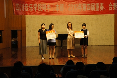 最后,由蔡校长宣布获奖名单,孙院长、评委老师以及附中各级领导分别为获奖选手颁奖并合影。在老师、家长、同学们的阵阵欢呼声中,附中第四届重奏、合奏比赛圆满落幕。