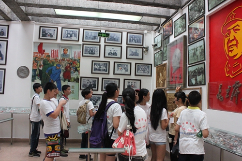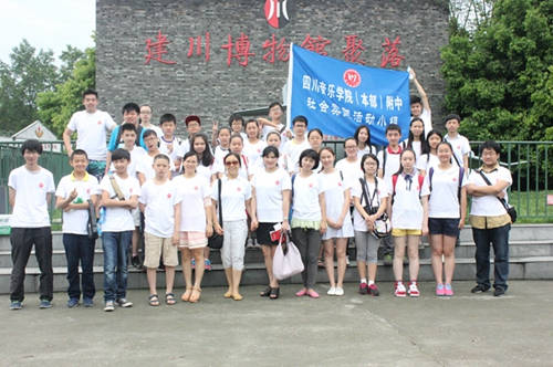 同学们朝气蓬勃,统一着装,挥举着蓝色的“川音附中社会实践活动组”旗帜,有组织、有纪律、平安抵达了我们此次社会实践的目的地:建川博物馆。建川博物馆座落于国家级历史文化名镇安仁古镇,博物馆以“为了和平,收藏战争;为了未来,收藏教训;为了安宁,收藏灾难;为了传承,收藏民俗”为主题,建设抗战、民俗、红色年代、抗震救灾四大系列30余座分馆,是目前国内民间资本投入最多、建设规模和展览面积最大,收藏内容最丰富的民间博物馆。