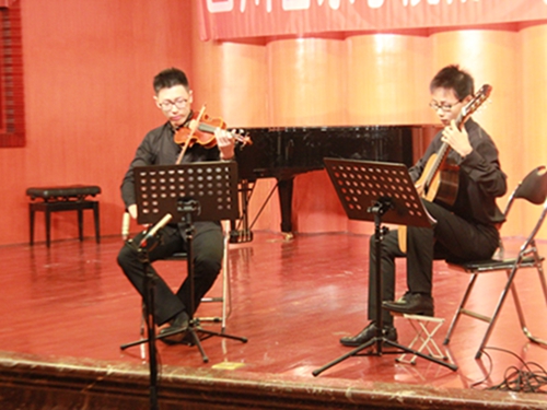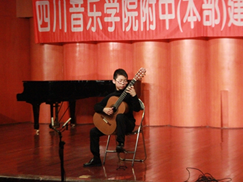 首先登场的是,钢琴三重奏《贝多芬钢琴三重奏》第一乐章,钢琴演奏者是高三年级的杨丹蕾同学,小提琴演奏者是高三年级的魏杉杉同学,大提琴演奏者是高二年级的舒韵竹同学。三位同学在自己的专业领域都获得过不同级别的奖项,非常成功的带领着大家走进了贝多芬的古典世界,把这首经典的重奏作品演绎出了自己风格与特色。随后是由高三年级学生刘国壁带来的钢琴独奏《舞狂》,他把这首高平作曲的钢琴作品演绎得淋漓尽致,气势非凡。第三个出场的是由初三年级的匡俊宏与高二年级的谢子寅带来的古典吉他与小提琴二重奏《A大调二重奏》。古典吉他演奏者匡俊宏在国际古典吉他赛事中获得多项大奖,他也是附中古典吉他专业中的佼佼者。小提琴演奏者谢子寅也曾获得国际弦乐大赛奖项,他们以过人的专业水平征服了在场所有人的眼睛与耳朵。第四个出场的是由附中高一年级学生向艺带来的古筝独奏《箜篌引》,她将这首曲子弹奏得收放自如,使大家仿佛身临其境。第五个出场的是由初一年级学生黄越轩带来的古典吉他独奏《大教堂》。第六个出场的是由高一年级学生赵小钦带来的声乐独唱《一杯美酒》,她曾获得全国比赛国际比赛的奖项,她生动活泼的演出,使观众对此印象颇为深刻。当观众还沉浸在优美的歌声中时,接下来的第七个出场的小提琴合奏《流浪者之歌》,实在令听众惊羡不已。演奏者为初一年级的邹樟、邹梦。他们双胞胎的萌娃形象深深的刻在了在场每个人心里,其俏皮的演奏与钢琴的伴奏相辅相成。第八个出场的是由刚获得第五届全国青少年民族乐器演奏比赛古筝少年组铜奖的高三年级学生文陈子涵带来的。她将这首叶小刚作曲的《林泉》弹奏得气势如虹,让人耳目一新。第九个出场的是由高二年级学生钟航的独奏《皮黄》,钟航在国内外比赛中获得了奖项。他将《皮黄》演绎得淋漓尽致,《皮黄》也是观众最为喜欢的钢琴演奏节目之一。优秀的表演与动人的作品让观众们感叹不已,古典的高雅与民族的音韵使来宾们陶醉其中。这时音乐会迎来了高潮,第十个与第十一个节目都为双排键表演,现代电子器乐的表演实在令观众们接连称赞。双排键的演奏结合了手、脚及全身的投入,使得双排键更具有艺术表演性与生命力,其模拟出整个庞大乐队的效果也为之惊艳。首先是来自附中高三年级的学生赵三川演奏的《俄罗斯狂想曲》,格里汀作品的曲风气势非凡,加上他的演绎,这首《俄罗斯狂想曲》成为了在场观众的深刻回忆。最后登场的是高二年级的陈垛尔,她带来的《Real in "D"》更是让观众认识了双排键的魅力,其收放自如的演奏,也是获得了观众的一致好评。