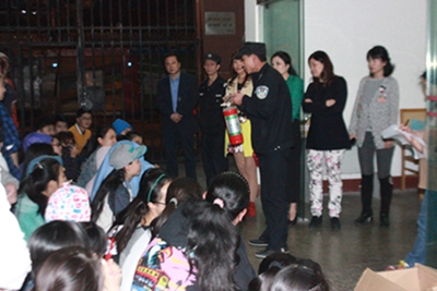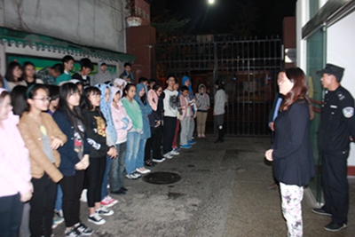 今年会于2015年4月21日晚在附中宿舍楼对住校生进行了本学期的消防演练,参加演练的有:蔡校长、唐书记、董科长、陈主任和办公室、学生科的全体老师,演练对象:全体住校生和宿舍保安及工作人员,演练总指挥:陈平主任。 晚9点,代表火警的口哨声吹响了,每层楼的负责老师紧急地呼喊、不断地催促住校生带上湿毛巾护住口鼻俯身迅速跑下楼,一共演习了两次,最终达到了在最短的时间内全体住校生顺利撤离宿舍楼。接下来由一名保安为同学们讲解了怎样使用灭火器,并由一名同学成功实践了使用灭火器灭火。最后,陈主任再次为同学们讲解了如遇火灾时的逃生办法和路线,蔡校长和唐书记分别就怎样在宿舍楼避免火灾发生及消防演练的重要性作了详细的讲解,对学生提出了要求,充分的肯定了这次演习。 火灾猛于虎,今年会将安全工作始终放在第一位,希望同学们能在一个良好的环境里生活和学习。