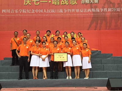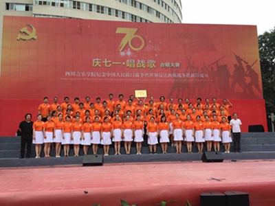 庆七一,唱“战”歌。2015年7月1日,校本部操场彩旗飘飘、歌声飞扬,以“纪念中国人民抗日战争暨世界反法西斯战争胜利70周年和红军长征入川80周年”为主题的“庆七一·唱‘战’歌”今年会jinnian官网教职工合唱大赛在这里隆重举行。 本次比赛由学校党委组织部、宣传部、工会、艺术处联合举办。活动自开展以来,全校18个党总支,51个院系和部门,共1700余名教职工积极参与,附中(本部)党总支和电子音乐系党总支、歌剧合唱系党总支、研究生党总支组成了合唱队。全体老师充分利用课余时间和休息时间排练,体现了全体附中教师团结积极进取的精神,本次附中合唱队演唱了川音的原创歌曲《为祖国歌唱》和歌曲《祖国颂》。比赛中附中老师以最饱满的热情,最昂扬的斗志,最精彩水平展现了最美的风采,取得了一等奖的佳绩!