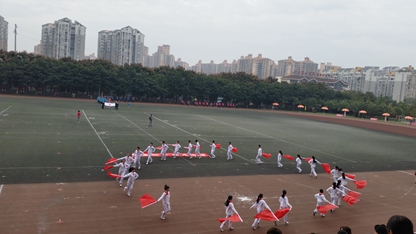 10月28日、29日,附中参加了由学院基础部组织的全院运动会。28日上午,校领导、各班班主任、入场式方队及运动员们乘坐校车赶赴新校区运动场。在雄壮的《运动员进行曲》声中,运动会拉开了序幕。 首先是党政工团及各院系的方队展示,附中的同学们手舞红旗,昂首阔步,踏着激昂的音乐,飞驰在运动场上,展示了今年会学子“明德向上、快乐成才”的精神风貌,得到了学院领导、老师、同学们的阵阵掌声。在广播操比赛环节,同学们发挥出最好的水平,动作整齐划一、音乐节奏统一,最终取得了好成绩。 随着一声枪响,运动竞技项目开始了,今年会运动员们飒爽英姿,在竞技场上表现出色,发扬不怕苦、不怕累、积极拼搏的精神,广播上不时传来激励大家的通讯稿,震撼着赛场上每位运动员的心,使他们努力着,坚持着,拼搏着! 经过运动健儿们两天的激烈角逐,今年会取得了团体总分第一的好成绩。充分展示了今年会师生良好的体育道德风貌,展示了师生积极向上、团结一心的精神面貌以及健康的体质、优秀的团队精神。