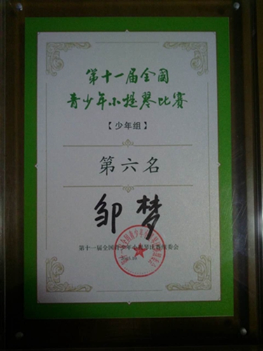 附中学生邹梦获“全国青少年小提琴比赛”中获得第六名
