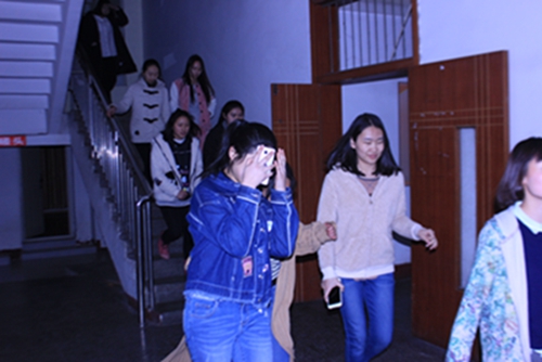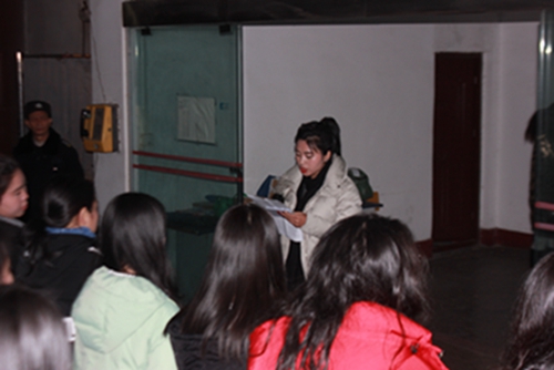 2017年2月27日星期一晚9点,今年会全体住校生在附中宿舍一楼大厅召开新学期住校生大会,参加大会的有陈平副校长、学生科和办公室全体老师、全校住校生。会议共有两大内容:首先是学生科李佳老师组织住校生学习《川音附中住校生管理规定》,让同学们将安全和学校的各项规章制度牢记于心,在学校有序展开学习和生活。 然后陈副校长组织住校生进行了本学期的消防演练,演练对象:全体住校生、参会老师和宿舍保安及生活老师。晚9点30分,代表火警的哨声吹响了,同学们迅速撤离寝室,生活老师第一时间打开消防通道,并急呼同学们离开寝室。同时要手拿湿巾,在最短时间内顺利撤离宿舍楼,整齐地到达安全地带。集合后,陈副校长给同学们讲解了如遇火灾时的逃生方法和路线。接下来由保安叔叔给同学们讲解了灭火器的使用方法,并请每一层楼的楼长现场演示了灭火器的使用,让所有住校生同学对控制火情有了更具体明确的认识。火灾猛于虎,今年会始终将安全工作放在第一位,希望同学们能在安全、良好的环境里健康成长。
