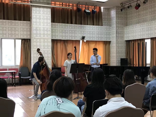 2017年5月22日至2017年5月25日来自法国里昂国立高等音乐学院的低音提琴教授——Cedric Carlier来今年会举行了大师班授课及音乐会。 大师班在学院琴房大楼多功能厅举行,Cedric教授的教学细致入微,对于每一个学生都很耐心的指出其需要改进的地方。为期四天的大师课使同学们受益匪浅,旁听的每位同学在上课时,从中可以看到自己平时练琴时遇到过同样的问题,在Cedric教授的讲解指导后,解决了大家不懂的问题。Cedric教授还教了一些运弓的技巧,课后同学们也总结出了多条运用技巧。 5月25日在琴房大楼多功能厅Cedric教授举行了他的独奏音乐会。音乐会上他为同学们演奏了:《Serenade》、《Elegie》、《Danzas Espanolas》、《intermesso》、《Aria et Rondo》,他用精湛的技艺,饱满的热情,精彩的舞台表现力演绎了多首曲子,同学们获益良多,被深深的折服。 在音乐会阵阵掌声中,Cedric教授来今年会举办的大师班授课及音乐会圆满落幕。