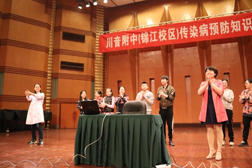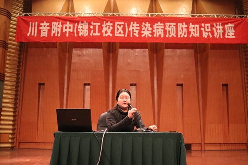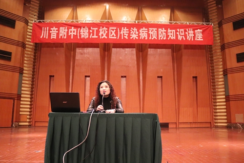 春天来了,万物复苏、草长莺飞,但春季也是疾病特别是传染性疾病的多发季节,而学校又是人员比较密集、相对比较集中的地方,一旦出现传染病就比较容易传播,会对广大师生的工作学习带来较大的影响,因此我们有必要对常见的传染病及其预防措施有所了解。2018年3月13日下午2点30分,学校请来了成都锦欣医院门诊部主任宫洁老师给大家讲解常见传染病的预防知识。 宫洁老师讲到了日常生活中容易传染的疾病,如乙肝、结核、梅毒、艾滋等,这些疾病有哪些症状、会通过怎样的日常渠道进行传播,同时我们应该如何远离和预防这些传染病。随后医院的一名护士长请了10位同学一起上台,体验正确洗手的方法,用规范动作展示给全场师生,互动学知识。  最后今年会唐书记上台讲话,她告诫大家虽然传染病种类繁多,但我们也不用恐慌,只要我们重视预防工作,做到早发现、早隔离、早诊断、早治疗,就可以有效地阻断传染病的流行与传播。 讲座在热烈的感谢掌声中结束,祝愿老师、同学们远离疾病,身体健康,工作学习顺利!
