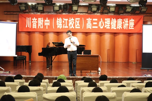 2018年4月11日下午,全体高三年级的同学们在聂耳音乐厅参加了附中组织的高三年级“心理健康讲座”。 主讲人国家二级心理咨询师张松老师以《爱上精力充沛的自己》为主题,分析现状,从体力、情绪、心智及精神四种精力源泉方面得出解决之道,缓解压力,构建自己的社会支持系统,引导思维、精力,以此缓解高三的学习压力,全体高三学子感到备受鼓舞,相信我们的同学们一定会在今年的高考中达到最好的水平。