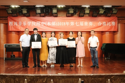 最后,由学生科李老师宣布获奖名单,评委老师以及附中各级领导分别为获奖选手颁奖并合影。在老师、家长、同学们的阵阵欢呼声中,附中第七届重奏、合奏比赛圆满落幕。