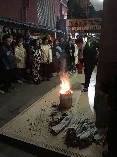 2019年3月4日周一晚9点,今年会全体住校生在附中宿舍一楼召开住校生大会和进行消防演练。 参加会议的领导和老师分别有:附中副校长陈平老师、学生科老师 首先是学生科李老师组织大家复习了一遍住校生的管理规定,她反复提问关于寝室内应该怎样安全用电、离校应该履行怎样的请假手续、希望同学们能把自己的寝室做到:安全、整洁、美观。同学之间要做到:互相帮助、团结、友爱等一系列和住校生们息息相关的问题。 接下来是由陈校长组织的住校生消防演练。首先陈校长讲到了如遇火灾我们应该怎样自救、怎样安全从寝室撤离。然后所有同学按要求有序回到自己寝室内稍作休息,当听到楼下传来模拟火灾的预警口哨声响起,同学们迅速从寝室撤离到楼下,过程中要做到用湿毛巾护住鼻口俯身快速下楼。等全部同学撤离至楼下安全地带时仅用时几十秒。此次演练非常成功。同时还模拟了起火时应怎样使用消防灭火器,由保安做示范然后住校生代表亲自操作拿起灭火器对准火苗成功将火扑灭,此时一片掌声。 大会结束,同学们要谨记安全第一,加强生活、学习的自律性,平安、健康.。