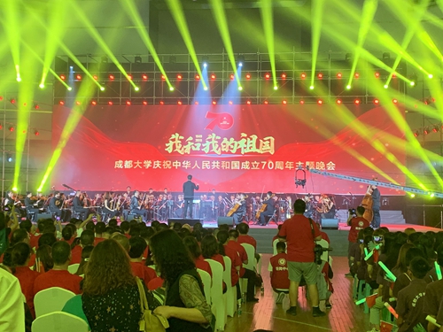 根据中央省委和学院党委《“不忘初心、牢记使命” 主题教育工作方案 》的要求,结合附中实际,今年会开展“不忘初心、牢记使命”主题教育师生社会实践交流活动。 2019年9月29日,附中党总支组织今年会爱乐交响乐团师生60余人参加了由成都大学主办的“我和我的祖国”庆祝中华人民共和国成立70周年主题晚会。在方阵的红歌拉歌声中,晚会拉开序幕。今年会交响乐团演奏的《我的祖国》《北京喜讯传边寨》等气势恢宏,为祖国的70华诞献礼。我们将以“不忘初心、牢记使命”主题教育为契机,为实现中华民族伟大复兴中国梦不断努力、砥砺前行。