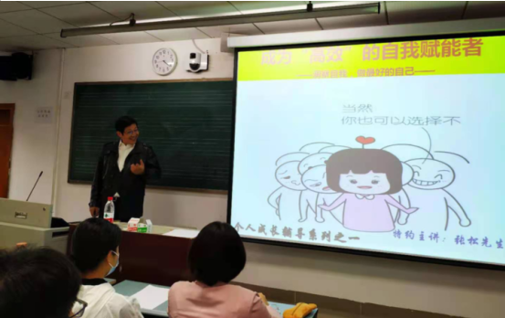 本次讲座由著名心理专家张松老师主讲。张老师从“让自己开心”说起,告诉同学们学习也好、生活也好,一定要自尊自爱,让自己过得轻松。同时,他也教导同学们如何规划时间、提高学习效率,让同学们受益匪浅。在讲座中,张教授还带领同学们做了一个小游戏——折纸。一张纸发给大家,让大家随意去折,每个人都折出不同的形态。最终揭开谜底,原来,张教授早已预设了一个标准的折法,但是遗憾的是,竟然没有人去问过他。这个小游戏让大家明白,凡事预则立,不预则废,在做事前一定要搞清楚自己的目标,否则只会白费功夫。