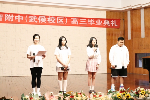 最后学生科科长董畅老师代表学校发言,向毕业生们提出了殷切的希望,满载着母校对学生们的美好祝福。学生代表陈枳同、邹译澜也向学校赠送了礼物,表达了对学校的感谢和祝福。