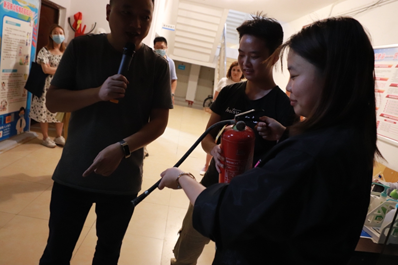 接下来保卫处邓科长讲解了关于消防方面的相关知识,教同学们怎样预防火灾、怎样使用灭火器、怎样逃生和熟悉宿舍楼的消防器材、逃生通道、应急指示灯的作用等跟大家息息相关的灾情应急的正确处理方法。