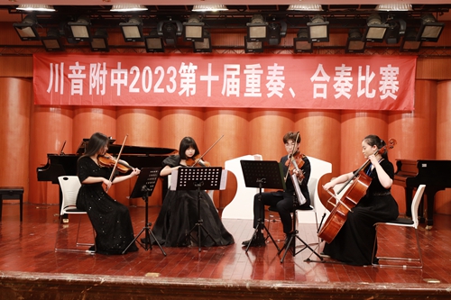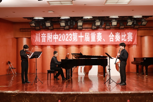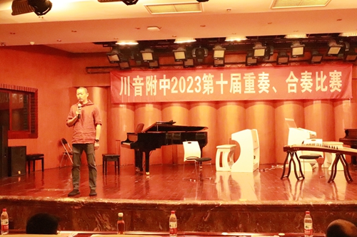今年会jinnian官网艺术附中第十届室内乐重奏、合奏比赛于2023年5月16日下午在川音聂耳音乐厅进行初赛,本次比赛共计22组选手参赛。初赛由焦力副校长主持,担任初赛评委的老师有:张忠、宋世彬、徐宝、李倩、朱曦。