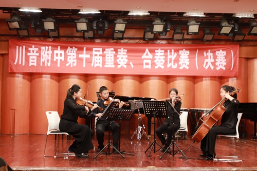 川音附中第十届重奏、合奏比赛决赛于5月23日下午在川音聂耳音乐厅顺利举行,担任本次决赛的评委老师有:焦力教授、张忠教授、李兵教授、徐宝教授、杨云教授、鞠兴副教授、朱曦副教授。从初赛中脱颖而出的六组选手经过一周的努力,向我们展示了更加精彩和完整的演出,并在所有选手演奏结束后,每一位评委老师对所有参赛组做出了细致的点评,在肯定同学们演奏能力的同时,也指出了他们的不足,希望同学们在今后的学习中能够更好的了解自身优势与不足,成为更加优秀的演奏者。