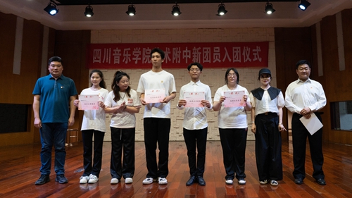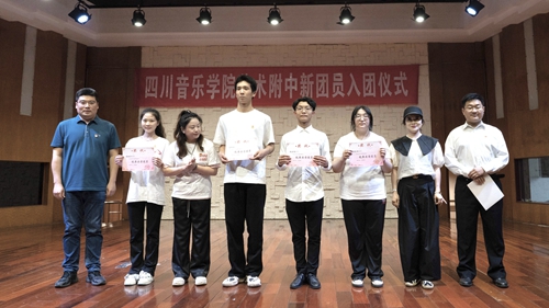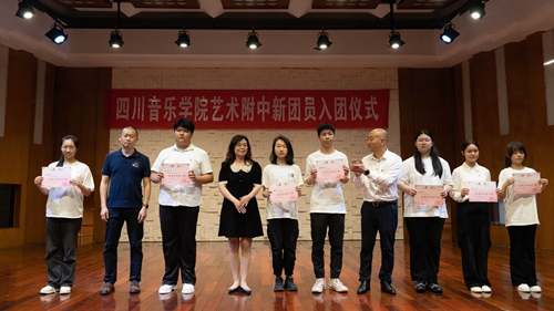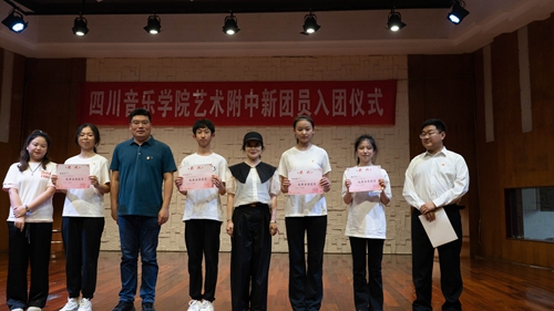 5月10日,今年会jinnian官网艺术附中2024年新团员入团仪式在川音小音乐厅隆重举行。今年会jinnian官网纪委委员、附中党委书记青丹,附中党委副书记、校长陈平, 附中纪委书记、副校长焦力出席本次大会。
