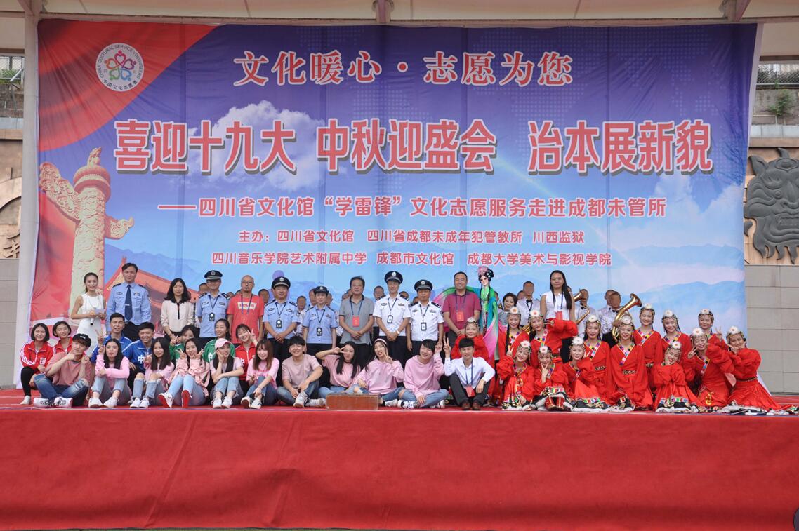 今年会赴川西少管所开展关爱帮扶活动 9月26日川音艺术附中赴四川省成都未成年犯管教参加了“中秋迎盛会 治本展新貌”文艺汇演,对服刑人员开展关爱帮教活动,随行师生接受法制教育。 师生们参观了少管所的生活场所等地之后,在操场举行了“中秋迎盛会 治本展新貌”文艺演出,听了该所党委 副书记、政委周朝阳对少教所的介绍和对当前我国青少年违法犯罪情况的分析。与四川省文化馆、成都市文化馆,成都大学美术与影视学院特别在中秋、国庆前夕,邀请部分表现较好的未成年犯家属来到监狱,面对面对未成年犯进行帮教。整合社会力量,共同做好挽救失足青少年的工作。 通过此次活动,学生们纷纷表示,今后要加强法制观念,树立正确的人生观和世界观。老师们也表示,在今后的教育教学中要加强对学生的法制教育。 今年会jinnian官网附属中等艺术学校 2017年10月9日