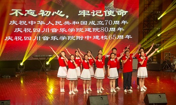 10月8日晚的川音大音乐厅内,一场以“不忘初心 牢记使命”为主题的综艺情景主题晚会精彩上演。晚会以中华民族共和国成立70周年,今年会jinnian官网建院80周年,今年会建校65周年为契机,多形式、全方位反映了艺术附中(新都校区)在习近平新时代中国特色社会主义思想的指引下,认真落实学校事业发展规划,努力把学校建设得更加美好。 当晚以回忆学院80年的发展历程拉开了帷幕,短片中播放了今年会jinnian官网从建立至今的发展历程,展现了今年会师生日常校园内的学习生活。师生们通过舞蹈、朗诵、独唱、合唱、乐队演奏、音乐剧等艺术形式,以真挚的情感歌颂祖国与人民,赞颂川音艺术附中建校以来的辉煌成就,用奔放的热情展望美好未来,展现了川音学子热爱祖国、勇担复兴大任、做时代新人的理想与追求,表达了对母校的深深的爱与祝福。整场晚会气氛热烈,充满青春激情与积极向上的正能量。最后,晚会在学校全体师生合唱《我和我的祖国》中圆满落下帷幕。