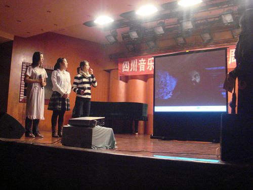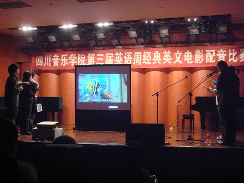 2008年11月20日晚6:30,第三届英语周电影配音比赛在校本部聂耳厅举行,附中有三个参赛组参赛。 附中的参赛影片可谓是精挑细选,有可爱、搞笑的动画片,有相当精彩的电影段落,同学们绘声绘色的表演让观众感受到了一次愉快的电影之旅。来自高一、一班的《哈利•波特与魔法师》、高一、二班的《公主日记》、高二、二班的《海底总动员》喜获名次。 二等奖: 高一、一班:宋一辛、刘姗姗、张月昕、李佳娴、戴芳柯君 高二、二班:郭且乐、王克娜、全 巍、张艺睿、吴鹏程、关 怀 三等奖: 高一、二班:彭韵子、赵聪杰、赵澜蔓 最具潜质配音演员:郭且乐、全 巍