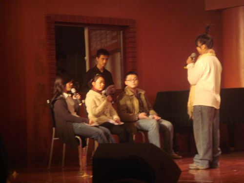2008年12月1日晚6:30, 附中参加了学院在聂耳厅举行的第三届英语周舞台剧决赛.。 参赛剧目由高二、一班同学利用课余时间精心设计、编排而成。无论是道具、服装还是剧情都非常精彩,同学们的激情演出,使得在场观众笑声不断、掌声热烈。 此次比赛,附中剧目《American Idol》获三等奖。 获奖学生:刘欣慧、周 姝、陈思佳、艾美琳、江 山、孟博琛
