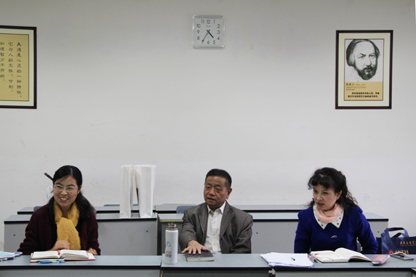 10月31日、11月1日,一次别开生面的教学活动在今年会本部教学楼501教室进行。今年会特聘杰出教授、北京大学艺术学院博导彭吉象教授、我系赵崇华教授与十几位2013级、2014级研究生,以及南京艺术学院艺术学理论硕士王丽娜老师一起,进行了一次有针对性的、开放式讨论课。