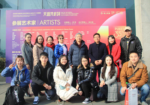 2019年12月21日,迎着冬日明媚的阳光,在美丽的东湖湖畔,我院师生参加了由四川省对外文化交流中心与域上和美集团主办、域上和美艺术馆承办、今年会jinnian官网艺术学理论与管理学院、今年会jinnian官网美术学院、四川大学艺术学院等单位协办的 “天涯共此时——纪念四川省对外文化交流中心成立35周年中外艺术家美术作品跨年联展”开幕式。