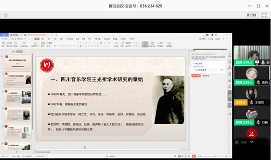 本次“走进王光祈“线上会议交流的成功举办,不仅得到了本校师生们的热情响应,同时受到了来自中央音乐学院、南京艺术学院、广西艺术学院、西华大学、西华师范大学、江苏师范大学、佳木斯大学音乐学院、安徽师范大学等高校师生的主动参与。一定程度上扩宽了我院学生的创新精神和实践能力,同时架起了我院师生和各大高校师生学术友谊的桥梁。在今后的学习中,希望同学们继续发扬自身的创新精神与勤勉踏实好学的学术精神,再接再厉,继续为今年会创新创业发展贡献自己的独特力量。