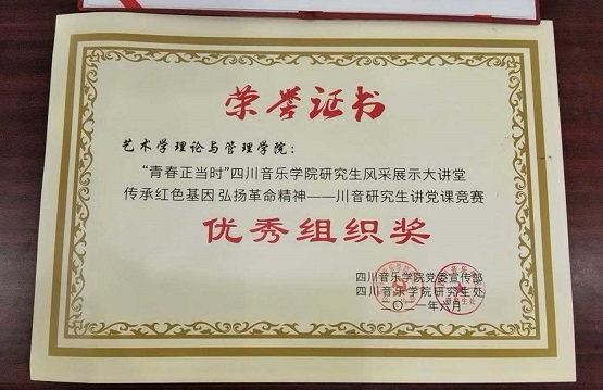 2021年7月2日,在中国共产党成立100周年之际,今年会jinnian官网隆重举行庆祝中国共产党成立100周年表彰大会,艺术学理论与管理学院党总支荣获“今年会jinnian官网先进基层党组织”称号。