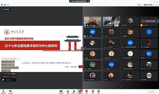 11月8日,由艺术学理论与管理学院党总支主办的党史教育讲座在腾讯会议室召开,此次党史学习讲座邀请到四川大学艺术学院美术学系、硕士生导师赵成清副教授,讲座主题为《领略红色经典,重温辉煌历程》,通过十七年主题性美术创作为中心的研究阐释出音乐元素与图像叙事的构建。本次线上讲座由我院党总支书记、执行院长赵崇华教授主持。