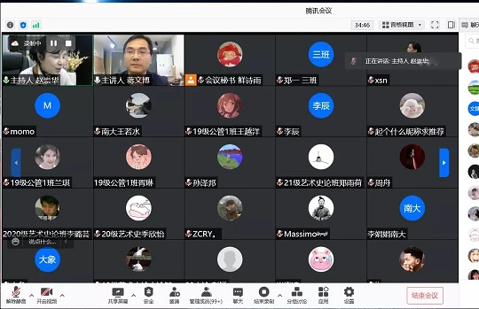 在讲座开始前,赵崇华教授为我们介绍了蒋文博教授在受邀参加我院承办的中国艺术学理论年会及学术研讨会,并担任大会主旨发言评议人,其精彩的点评,使师生们感到耳目一新,留下了深刻的印象。同时,恰逢成都解封,她表示借此次线上讲座的机会来庆贺这个好消息。