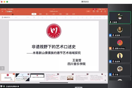 2021年11月6日,由由中国传媒大学发起并主办,中国传媒大学崔永元口述历史研究中心承办,中华口述历史研究会、中国人民大学史学理论研究所学术支持的第七届“口述历史在中国”国际研讨会顺利举行。此次会议主题为“开创·承继——口述历史的过去与未来”,采用腾讯会议方式开展。据悉,此次会议邀请到中国、新加坡、美国、加拿大、巴基斯坦等国家,中国社会科学院、北京大学、中国戏曲学院、新加坡国立大学、康奈尔大学、中国人民大学、中国艺术研究院、中国传媒大学、南京艺术学院、旁普遮大学等二十多所院校,共三十余位专家、学者、同学参会。我院2021级研究生王玺哲携论文受邀参会,并在大会发言。王玺哲同学的发言题目是《非遗视野下的艺术口述史——米易新山傈僳族约德节艺术场域探究》(赵崇华教授指导)。