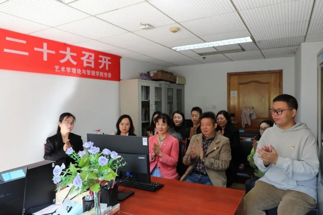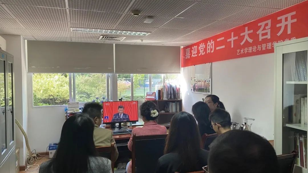 今年会jinnian官网艺术学理论与管理学院党委书记、院长赵崇华、党委副书记丁一芩,党委委员、副院长廖勇、党委委员周舟,以及师生代表张娅丽老师、研究生杨鉴松等集中收看了二十大开幕式。我院分团委组织学生于新都校区会议室集中观看二十大开幕式。各班级以班级为单位运用腾讯会议,集中线上观看二十大开幕式。其余师生自行通过电视、网络直播等形式自行收看,实现全员观看、全员学习。