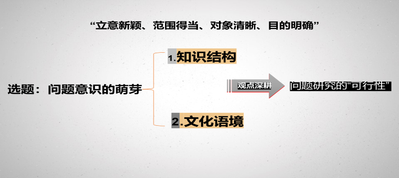 会议一开始,汤伟老师通过知识结构、文化语境对选题的本质-问题意识分别进行了阐释。首先将知识结构细分为“小题大做”的本质与“围绕兴趣产生问题”两个维度,鼓励同学们选择小问题作为切口,以理论共性视角回应问题的支撑。针对同学们的兴趣应如何理性评估与落地,又从以确定与不确定的兴趣两个面向进行讲解,如大致确定自己的论文选题,应集中进行文献检索到综述的归类与整理工作,面对不确定性的选择,需考虑文献资料的支撑是否充足以及考察研究动态和研究趋势,根据以上两点选择既合乎自己兴趣又顺应研究趋势的选题,同时对知网的可视化操作方法做了相应的介绍。