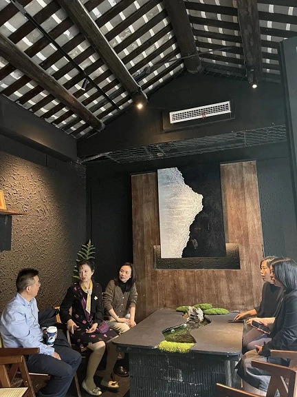 澄园企业管理有限公司总经理路杏亚代表全体公司职员对我院一行人的到来表示热烈的欢迎。路杏亚总经理对企业基本信息、运营理念进行了介绍,并带领调研组从澄园的住(澄舍)、食(澄膳)、文(博物馆、澄书房)、医(澄源堂中医馆)四个产业进行参观。