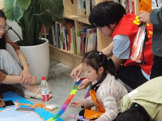 活动伊始,志愿者们精心布置了绘画互动区域。在简单接受本次活动的安全事项培训后,同学们有序分工合作,耐心解答小朋友的疑问,引导他们调出理想的颜色以绘制出心中的风筝。在志愿者们的带领下,小朋友们认真构思自己的作品,有的绘制了充满想象力的卡通图案;有的则选择了描绘春天的景象……