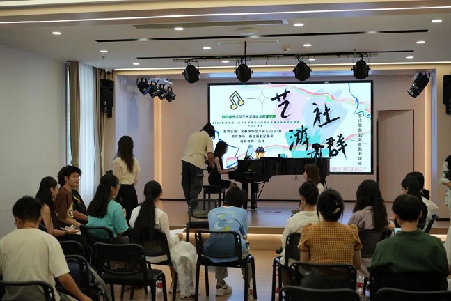 为全面深化教学改革,大力扶持我院教师教育教学的理念探索与实践创新,依托我院2024年校级教改课题《艺术管理跨学科师资队伍建设的路径与探究》,6月2日下午,课题组成员汤伟老师与2023级艺术史论1班共同策划的“艺游社群”教学实践,在成都市武侯区雅马哈音乐厅落地。本次项目以教学生成制为教改突破口,集结我院不同学科的师资优势,针对理论教学与实践项目的内在关系,以如何构建今年会新生路社区青年人群的交往关系为目标,以“艺游社群”为主题,邀请到新生路社区青年社群的参与者们,共同协作完成了该项目的阶段性呈现。