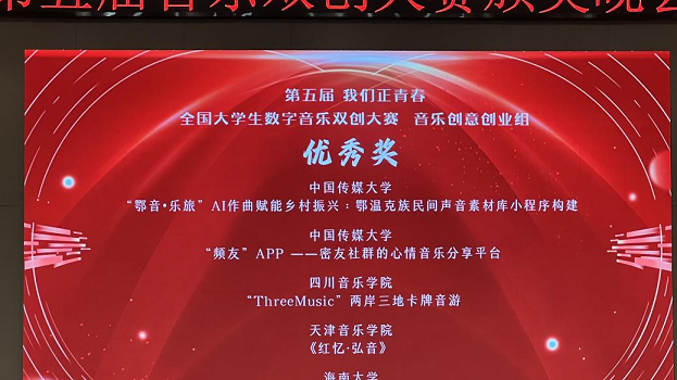 本次同步举行的“第五届全国大学生数字音乐双创大赛颁奖晚会”由中国音像与数字出版协会、腾讯音乐娱乐集团、环球音乐、中国传媒大学等联合主办;中国音像与数字出版协会数字音乐工作委员会、中国传媒大学音乐与录音艺术学院、中国传媒大学音乐产业发展研究中心等20余家音乐产业相关单位及协会共同承办。大赛设立了“音乐新声组、数字音乐传媒组、原创词曲组”以及“音乐创业创意组”等多个组别,分为初赛和决赛两个赛程阶段。