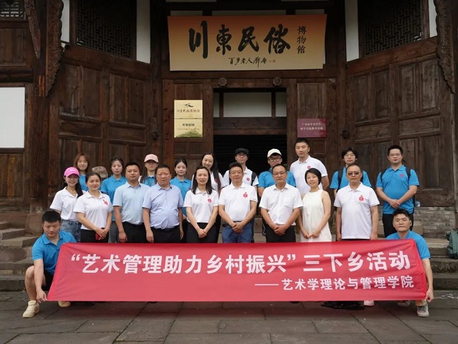 7月4日下午,副院长廖勇教授、党委副书记、纪委书记丁一芩副研究员携师生代表开展艺术管理赋能乡村振兴调研活动。在川东民俗博物馆“道台院子”,调研川东北民俗文化。通过参观民俗文化厅、广安乡贤名宦祠、川工木雕厅、广安抗战厅等十余个展厅,我院师生代表对广安的历史、建筑、艺术等都有了更深入的认识。