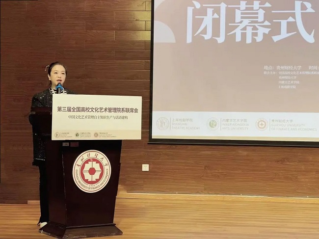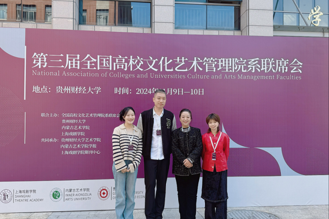 2024年11月9日至10日,由全国高校文化艺术管理院系联席会、贵州财经大学、内蒙古艺术学院、上海戏剧学院联合主办,贵州财经大学艺术学院、内蒙古艺术学院学报以及上海戏剧学院期刊中心共同承办的“第三届全国高校文化艺术管理联席会”在贵阳市贵州财经大学顺利召开。此次联席会汇聚了来自全国20余家院校代表和60余名文化艺术管理领域的专家学者、行业精英及青年学者,共同探讨文化艺术管理的新理念、新路径与新实践。我院院长格桑梅朵教授、教师代表杨然副教授、卢小璐老师、鲜诗雨老师受邀参会。
