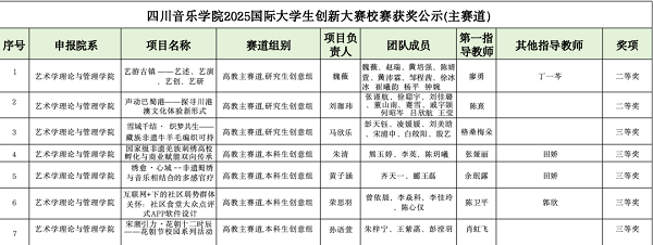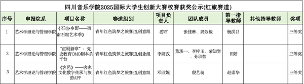 据公示结果,在高校主赛道上,我院共获奖7项,其中研究生创意组魏薇团队(指导教师廖勇、丁一芩)、刘珈玮团队(指导教师陈熹)荣获二等奖,马欣乐团队(指导教师格桑梅朵)荣获三等奖;本科生创意组朱清团队(指导教师张娅丽、田娇)、黄子涵团队(指导教师余珉露、田娇)、荣思羽团队(指导教师陈卫平、郭欣)、孙语萱团队(指导教师肖虹飞)荣获三等奖;在红旅赛道中,学院共获奖3项,分别为:游君团队(指导教师杨洪吕)、李妍孜团队(指导教师田娇)、邓欣婉团队(指导教师赵崇华)等荣获三等奖。学生们运用专业所学为社会发展提供创新思路与解决方案,充分展现出他们扎实的学术功底与创新思维能力,有效体现了艺术学理论与管理学院学生在课外实践活动中的创新成果。