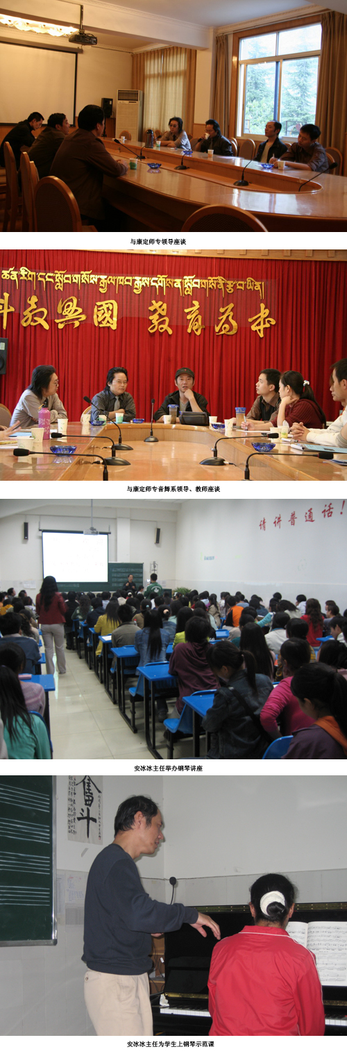 为认真贯彻落实省政府、省教育厅的相关要求,积极支持康定师专的“专升本”工作,我系按照学院关于对口支教康定师专的工作部署,高度重视与康定师专的对口支教活动。10月9日,音教系安冰冰主任等赴康定师专进行了为期一周的前期考察和支教活动,受到了康定师专的热忱欢迎。 在为期一周的前期考察、支教活动中,安冰冰主任多次以座谈、教研会、个别谈话等形式与康定师专校、系领导和师生就办学质量、办学水平、学科建设、师资队伍建设、生源、设施设备配置等方面的情况进行了较深入的调查研究,对部分学科进行了重点听课,并以讲座的形式为部分学生公开授课,有针对性地指导青年教师的教学工作。 通过此次前期考察和支教活动,音教系将根据实际情况,与康定师专音舞系商讨出具体可行的支教方案和措施。按要求精心组织、认真落实,有计划、有步骤地组织系内相关专家教师采取多种形式、广泛地开展对口支教活动,努力使支教活动能更全面、更有实效地开展。