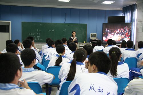2007年9月28日,音乐教育系实习领导小组及带队教师到成都七中检查了音乐教育系2007年毕业生在该校的教育实习情况。 实习领导小组受到了成都七中领导的热忱欢迎和接待。系领导看望了实习学生,详细了解他们的学习、工作情况,鼓励他们珍惜实习机会,充分利用现有的实习环境和条件,本着对学院和自己负责,对实习学校及学生负责的态度,善始善终,搞好教育实习。实习学生表示,一定不辜负领导和老师们的期望,练好本领,将来更好地服务社会。实习领导小组还参观了成都七中管乐教室、电钢教室、排练厅等音乐教学场地,与七中领导、教师进行交流,在人才培养、课程设置、实习基地建设等方面听取了建议和意见。 在检查过程中,实习领导小组随堂听了实习生上的音乐欣赏课。实习学生在课堂上熟练使用多媒体教学手段,综合运用文学、地理等多学科知识,将中国传统的汉族民歌介绍得生动、有趣,课堂气氛活跃。实习领导小组对上课情况进行了认真记录,并在课后给予了详细点评。 随后,实习领导小组查看了钢琴和管乐排练的教学实习情况。