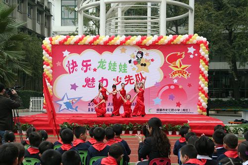 2007年10月13日是中国少年先锋队成立58周年的纪念日,担任成都市龙江路小学(南区)“校外辅导员”的音乐教育系学生来到龙江路小学,参加了主题为“快乐龙娃娃 魅力少先队”的庆祝建队纪念日暨新生入队的主题活动。 为搞好本次实践活动,音教系领导高度重视,积极部署,活动当天,师生们带着热情洋溢的舞蹈《燃烧》来到活动现场,精湛的表演和昂扬的精神状态获得了龙小师生及学生家长们经久不息的掌声,展示了音乐教育系学生良好的精神风貌。