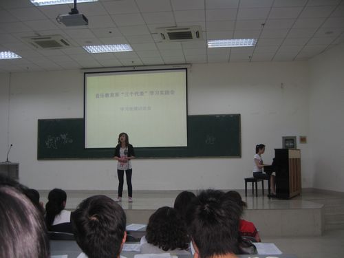 2010年5月31日,为了让社团成员对世博会内容有一个更深刻的认识和理解,将大学生活与国家大事更加紧密联系起来,音乐教育系“三个代表”学习实践会围绕世博会举行了一次讨论会。音乐教育系团总支书记王蜀南老师、全体“三个代表”学习实践会成员以及院学生会社团部同学参加了讨论会。