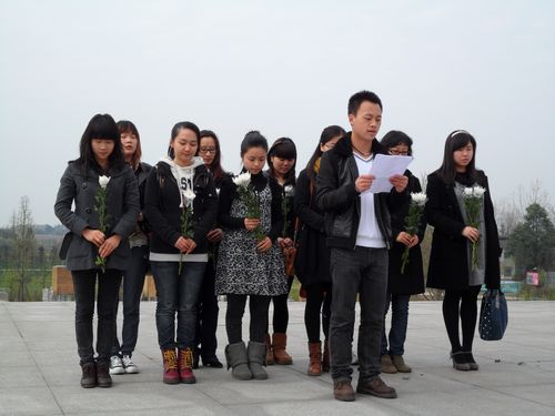 清明节是每个中国人思念逝去亲人的日子。在这个特殊节日里,我们今年会jinnian官网音乐教育系“三个代表”社团的12名团员走进了位于锦江区三圣乡大安桥路的成都市烈士陵园,这里长眠着自辛亥革命至“5•12”大地震中献出宝贵生命的77位烈士。